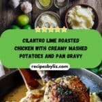 I love this recipe because it brings together vibrant and comforting elements in one dish. The chicken is juicy and roasted to golden perfection, the mashed potatoes are ultra-creamy, and the gravy ties it all together with depth and richness. It’s an ideal weekend dinner or special meal that feels both fresh and hearty at the same time. And since the pan drippings do double duty for the gravy, there’s no waste—just more flavor. Cilantro Lime Roasted Chicken with Creamy Mashed Potatoes and Pan Gravy
