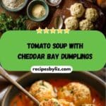 Tomato Soup with Cheddar Bay Dumplings is a cozy, one-pot meal that combines creamy, tangy tomato soup with soft, cheesy dumplings inspired by Cheddar Bay biscuits. It’s the perfect comfort food mashup for chilly days or anytime you crave a savory, satisfying dish.