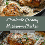 This 20-Minute Creamy Mushroom Chicken is one of my favorite easy dinners — fast, comforting, and full of flavor. I love how tender the chicken turns out and how the creamy mushroom sauce feels both rich and cozy. It’s a restaurant-quality meal made simple, perfect for when I want something quick yet satisfying any night of the week.