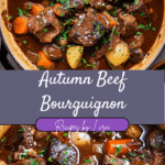 Autumn Beef Bourguignon is a rich, slow-simmered French-inspired beef stew made with red wine, earthy vegetables, and aromatic herbs. It’s the perfect cozy dish for chilly fall evenings, delivering deep, comforting flavors in every bite.