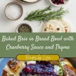 Baked Brie in Bread Bowl with Cranberry Sauce and Thyme