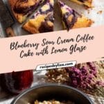 This Blueberry Sour Cream Coffee Cake is a moist and tender treat bursting with fresh blueberries and a hint of lemon zest. Topped with a cinnamon streusel and drizzled with a tangy honey lemon glaze, it’s perfect for breakfast, brunch, or an afternoon snack.