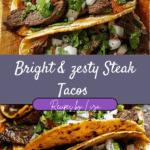 Bright & Zesty Steak Tacos are my go-to when I want bold, fresh flavor packed into every bite. Juicy, marinated steak is grilled or seared to perfection, sliced thin, and tucked into warm tortillas with vibrant toppings like citrusy slaw, fresh herbs, and a punchy lime crema. These tacos are a flavorful, colorful, and satisfying meal that comes together quickly—and disappears just as fast.