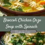 Broccoli Chicken Orzo Soup with Spinach