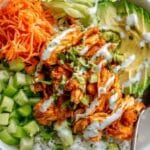 For different flavor profiles, sometimes I like to add roasted corn or black beans to the bowl for a southwestern vibe. You could also swap out celery for sliced cucumber or even add diced avocado for extra creaminess. If you want to cook the chicken differently, grilling or baking the chicken breasts before tossing them in buffalo sauce adds a smoky, charred dimension that’s delicious.