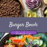 Burger bowls are a deconstructed take on the classic burger—minus the bun and packed with fresh, flavorful toppings. Juicy seasoned ground beef, crisp veggies, melty cheese, and creamy sauce come together in a bowl for a satisfying, low-carb meal.