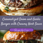 A gourmet-style burger featuring juicy beef patties topped with sweet caramelized onions, savory garlic, and a homemade creamy herb sauce. This restaurant-quality burger is perfect for cookouts or a flavorful weeknight treat.