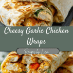 Cheesy Garlic Chicken Wraps are a quick, satisfying meal made with juicy garlic-seasoned chicken, melty cheese, and optional veggies, all wrapped in a warm tortilla. They’re easy to prepare, customizable, and perfect for lunch, dinner, or meal prep.