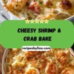 Cheesy Shrimp & Crab Bake is a creamy, savory seafood casserole made with shrimp, crab, and a blend of cheeses and seasonings. Baked to golden perfection, it’s ideal as a main dish, side, or party dip.