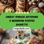 PrintCheesy Spinach Artichoke & Mushroom Stuffed Baguette