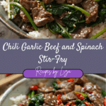 I like this recipe because it’s fast, healthy, and satisfying. The stir-fry sauce is spicy, garlicky, and slightly savory-sweet, which pairs perfectly with thin slices of beef. I also love that spinach cooks down so quickly, adding nutrients without much effort. It’s one of those meals I can put together even on the busiest days, and it tastes just as good as takeout. Chili Garlic Beef and Spinach Stir-Fry