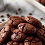 If you’re hosting a dinner or holiday party, these cookies are fantastic alongside a dessert wine like a deep ruby port or a rich espresso martini cocktail. Their bittersweet chocolate and coffee flavors complement those beverages perfectly. Serving them at room temperature is just fine, but I also enjoy popping a cookie in the microwave for 10 seconds right before serving—it brings out the gooey melted chocolate and warms those espresso flavors delightfully.