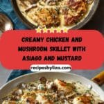 Creamy Chicken and Mushroom Skillet with Asiago and Mustard is a rich, savory one-pan dinner featuring tender chicken simmered in a velvety sauce with earthy mushrooms, nutty Asiago cheese, and a gentle tang of mustard. It’s cozy, satisfying, and perfect for an elevated weeknight meal.