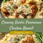 Creamy Garlic Parmesan Chicken Breast is a one-pan skillet dish featuring tender, seared chicken breasts smothered in a rich and velvety garlic-Parmesan cream sauce. It’s quick, comforting, and perfect for pairing with pasta, rice, or veggies.