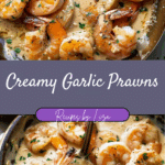 Creamy Garlic Prawns is a rich and indulgent seafood dish featuring juicy prawns in a silky garlic‑cream sauce, perfect over pasta, rice, or with crusty bread. It’s quick to make yet feels restaurant‑worthy — garlicky, creamy, and satisfying.