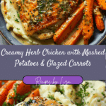Creamy Herb Chicken with Mashed Potatoes & Glazed Carrots is a cozy, elegant meal featuring juicy chicken in a rich herb cream sauce, buttery mashed potatoes, and sweet glazed carrots. It’s hearty, flavorful, and perfect for dinner any night of the week.