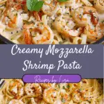 A rich and comforting pasta dish made with tender shrimp, garlic cream sauce, and melty mozzarella—perfect for a cozy, cheesy dinner that feels fancy but is easy to make.
