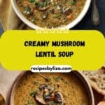 Creamy Mushroom Lentil Soup is a hearty and nourishing dish made with earthy mushrooms and tender lentils simmered in a rich, velvety broth for a comforting and satisfying meal.