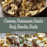 This Creamy Parmesan Garlic Beef Bowtie Pasta is a comforting one-pan meal featuring tender ground beef, bowtie pasta, and a rich, cheesy garlic-Parmesan sauce. Perfect for cozy dinners or easy weeknight meals.