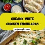 Creamy White Chicken Enchiladas are a rich and satisfying twist on traditional enchiladas. I roll tender shredded chicken into soft tortillas, smother them in a homemade white sauce made with sour cream and green chiles, and top everything with melty cheese. It’s creamy, cheesy, and full of comforting flavor in every bite.