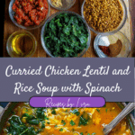 Curried chicken lentil and rice soup with spinach is a hearty, nutritious meal-in-a-bowl featuring warm curry spices, tender chicken, earthy lentils, and soft rice. It’s cozy, filling, and packed with comforting flavor — perfect for chilly days or meal prep.