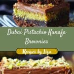 I love how this recipe takes something familiar—rich, dense brownies—and dresses it up with exotic textures and flavors. The kunafa adds a golden, crispy layer that contrasts perfectly with the soft brownie base, while the pistachios bring a vibrant color and earthy sweetness. It’s the kind of treat that looks gourmet, tastes luxurious, and makes any dessert table feel special.