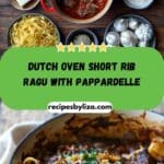 Dutch Oven Short Rib Ragu with Pappardelle is a hearty, slow-braised beef dish featuring tender short ribs in a rich tomato and red wine sauce, tossed with wide pappardelle noodles. It’s comforting, gourmet, and perfect for cozy dinners.