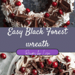 This Easy Black Forest Wreath is a festive holiday dessert inspired by the classic Black Forest cake. Featuring layers of chocolate cake, whipped cream, and cherry filling arranged in a beautiful wreath shape, it’s indulgent, eye-catching, and simple to assemble.