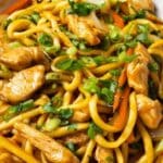 Absolutely! You can replace the chicken with firm tofu, tempeh, or simply load up on a variety of stir-fried vegetables like mushrooms, snap peas, and baby corn for a colorful, meat-free alternative. I often use a vegetarian mushroom sauce instead of oyster sauce to keep the umami flavor intact while staying plant-based. It’s a delicious way to enjoy lo mein without meat.