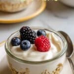 Simply substitute the Greek yogurt with a plant-based yogurt like coconut or almond yogurt and use a milk alternative such as almond or oat milk. Swap honey for maple syrup or agave nectar to keep it fully vegan.