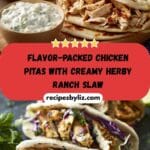 These chicken pitas are bursting with bold flavor, wrapped in warm pita bread and loaded with juicy chicken, fresh veggies, and a creamy herby ranch slaw that ties everything together. It’s the kind of recipe that feels fresh and satisfying without being complicated.