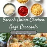 This French Onion Chicken Orzo Casserole is a one-pan comfort dish that combines caramelized onions, juicy chicken, and creamy orzo, all topped with melty cheese. It’s cozy, savory, and perfect for a hearty dinner.