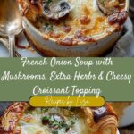 French onion soup with mushrooms, extra herbs, and a cheesy croissant topping is a comforting, flavorful dish I love making when I want something warm and indulgent. The combination of caramelized onions, savory mushrooms, and rich, cheesy topping makes this soup a standout meal I always look forward to enjoying.