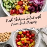 This easy chickpea salad recipe is a fresh, protein-packed dish perfect for a healthy lunch or picnic side. Combining cooked chickpeas with vibrant grape tomatoes, crisp cucumber, tangy pickled red onions, and briny kalamata olives, all tossed in a zesty lemon vinaigrette and fresh herbs, this salad is both satisfying and flavorful.