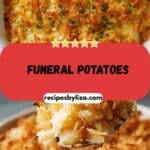 Funeral potatoes are a creamy, cheesy, and comforting casserole made with hash browns, sour cream, and shredded cheese, topped with a buttery cornflake crunch. This beloved dish is perfect for holidays, potlucks, or cozy family meals.