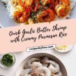 This Garlic Butter Shrimp and Rice recipe features juicy, extra-large shrimp sautéed in a rich garlic butter sauce, combined with fluffy rice, and finished with creamy parmesan cheese and fresh parsley. Ready in just 20 minutes, it’s a quick and flavorful dish perfect for a weeknight dinner.