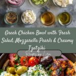 A fresh and flavorful Greek-inspired chicken bowl made with marinated grilled chicken, crisp vegetables, mozzarella pearls, and creamy tzatziki. It’s a satisfying and balanced meal perfect for lunch or dinner.