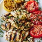 - Serve: Arrange grilled chicken on a platter, squeeze the grilled lemon over it, garnish with fresh herbs, and spoon the reserved 2 tablespoons of marinade on top (do not use marinade that was in contact with raw chicken).