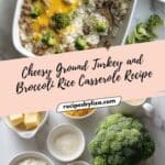 This Ground Turkey Rice Casserole is a comforting baked dish featuring lean ground turkey, broccoli, and rice all combined in a creamy homemade cheddar sauce without the use of canned soup. Ready in under an hour, it delivers a wholesome and flavorful family meal with a golden bubbly cheese topping.