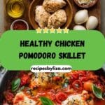 Healthy Chicken Pomodoro Skillet is a bright, one‑pan meal featuring lean chicken simmered in a fresh tomato‑garlic sauce with herbs and olive oil. It’s light yet satisfying and comes together quickly, making it perfect for weeknight dinners or meal prep.