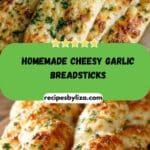 These homemade cheesy garlic breadsticks are soft, fluffy, and loaded with garlic and melted cheese. Perfect as a side or snack, they’re baked to golden perfection and packed with comforting flavor in every bite.