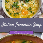 Italian Penicillin Soup is a comforting, hearty soup combining savory chicken broth, tender chicken, vibrant veggies, and pasta, finished with lemon, herbs, and Parmesan for a soothing, immune‑boosting bowl of warmth. It’s a cozy twist on classic chicken soup with bold Italian flavors.