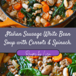 Italian sausage white bean soup with carrots and spinach is a cozy, one-pot meal that’s packed with hearty sausage, creamy white beans, tender carrots, and fresh spinach. Perfect for chilly evenings, it’s nourishing, flavorful, and easy to make.