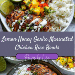 I love this recipe because it hits all the right notes—bright citrus, rich garlic, and sweet honey come together to create a marinade that’s bursting with flavor. It’s perfect for meal prep, customizable with whatever veggies I have on hand, and the balance of protein, carbs, and freshness makes it a go-to bowl for feeling full and energized. It’s one of those simple meals that tastes anything but boring. Lemon Honey Garlic Marinated Chicken Rice Bowls