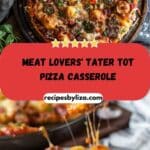 Meat Lovers’ Tater Tot Pizza Casserole is a hearty, cheesy dish that layers pizza-inspired meats and sauce with gooey cheese and crispy tater tots. It’s the perfect fusion of pizza night and comfort food casserole.