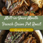 Melt-in-Your-Mouth French Onion Pot Roast is a cozy, slow-cooked dish featuring tender beef simmered in a rich broth of caramelized onions, garlic, thyme, and optional cheese. It’s a hearty twist on French onion soup that’s perfect for comforting meals.