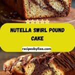 A rich and buttery pound cake swirled with creamy chocolate-hazelnut spread, creating a moist, tender crumb with beautiful marbled ribbons throughout.