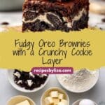 These rich and fudgy Oreo brownies are packed with almost an entire pack of Oreos for an irresistible dessert. Easy to make and perfect for Oreo lovers, this recipe combines melted chocolate and butter with cocoa, sugar, and a generous Oreo cookie layer for brownies that are decadent, chewy, and delicious.