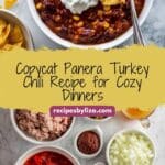 This Panera Bread copycat turkey chili recipe delivers the same hearty, comforting flavors you love right at home. Using lean ground turkey and a robust blend of spices, vegetables, and beans, this chili is packed with protein and wholesome ingredients, simmered to perfection for a deliciously satisfying meal.