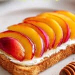 - Finish and Serve: Drizzle additional honey over the peach-topped toast for extra sweetness. Enjoy by cutting with a fork and knife, savoring every perfect bite.